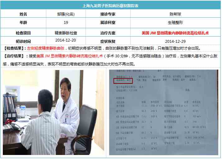 为时不晚:在同事的介绍下我去了上海九龙医院接受了”美国JM显微精索内静脉转流高位结扎术“治疗,(同事哥哥早年的不育症也是在上海九龙医院康复的)术后复诊检查时报告显示我的精子活力恢复到了a级,精子质量极大改善,后半年妻子就成功怀孕了,现在自己终于当上了爸爸。如今的三口之家很温馨,希望和我有相同问题的朋友也能早日迎来你们的三口之家。