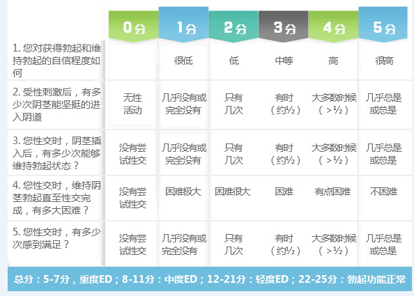 特别提醒:若勃起功能正常者无需过于紧张,对于偶有发生阳痿,但在下一次性生活时完全正常,可能是一时紧张或劳累所致,不属于病态。临床上只有在性交失败率超过25%时才能诊断为阳痿。如果自我检测有阳痿情况及时到正规医院检查就诊。自我测试为阳痿了,这是怎么回事?怎么办?点击向医师描述症状诊断病情